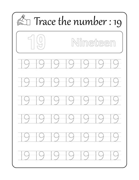 Download and print to get. Web kindergarten students have to trace, write, identify and count the number 19 by using the worksheet on number 19. Web number 19 trace worksheet.
