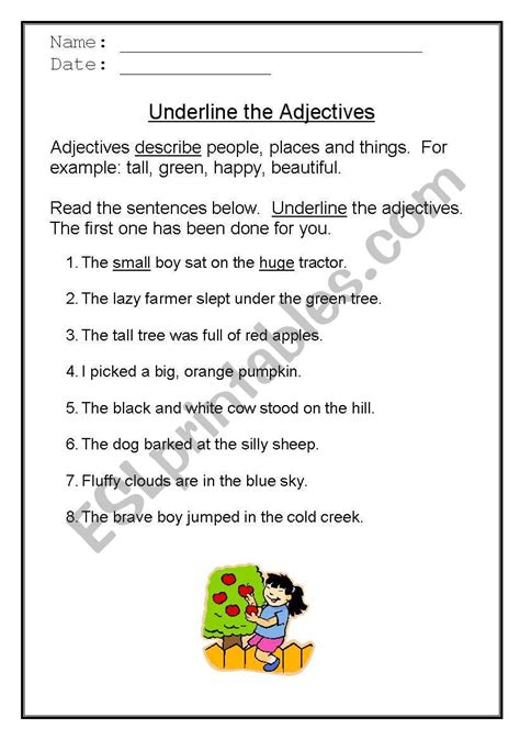 In this article, explore adjectives exercises with answers. D) the fat man and his wife. In these grade 1 grammar worksheets students are asked to circle the adjectives and underline the nouns each adjective.