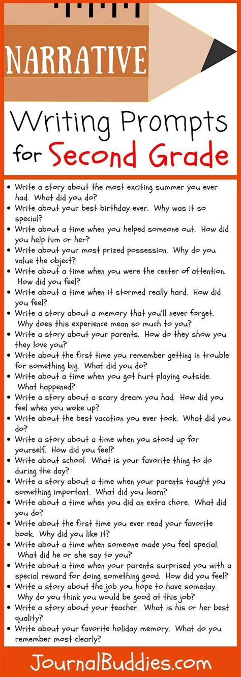 Not only do these prompts reduce writer’s block, but they also promote critical thinking and encourage learners to develop their writing skills. Retell a funny thing that happened when learning a second language. Many second graders are capable of recounting a story from beginning to end, including an introduction, a basic plot, a simple description of the setting and characters, a climax, and an ending or.
